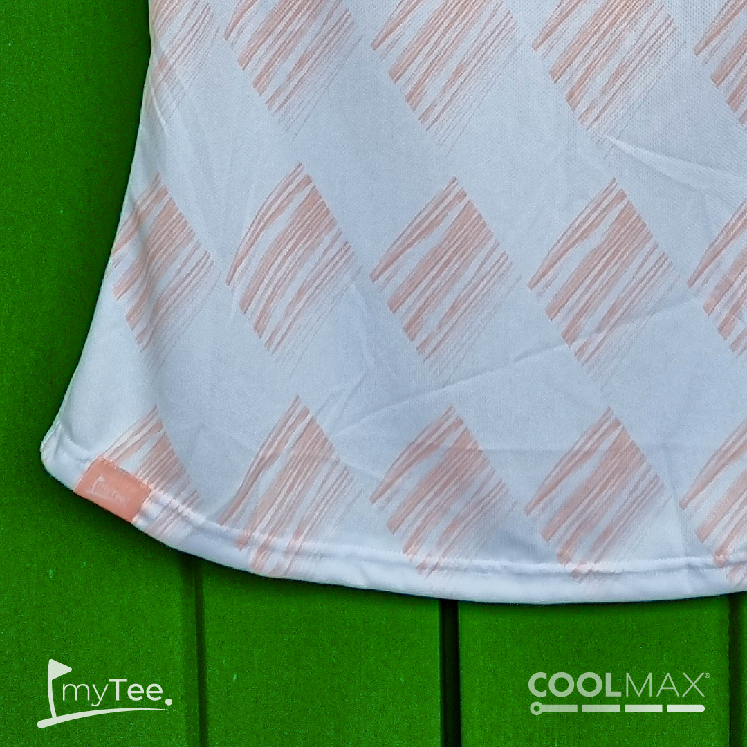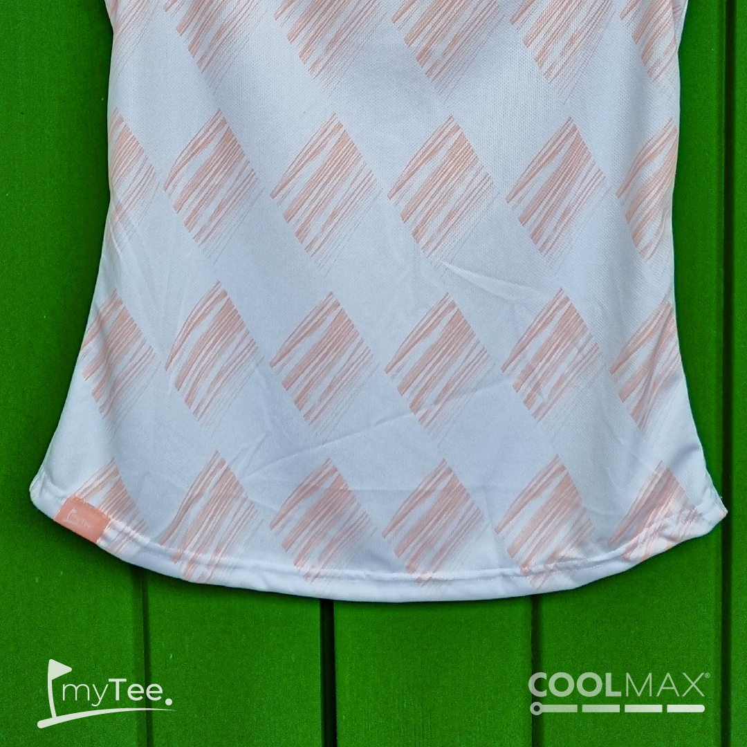 Here we present beautiful Women Golf Apparel . MyTee women’s sleeveless golf shirt features a stylish modern colourful argyle. It is design in a soft peach on a classic white background.